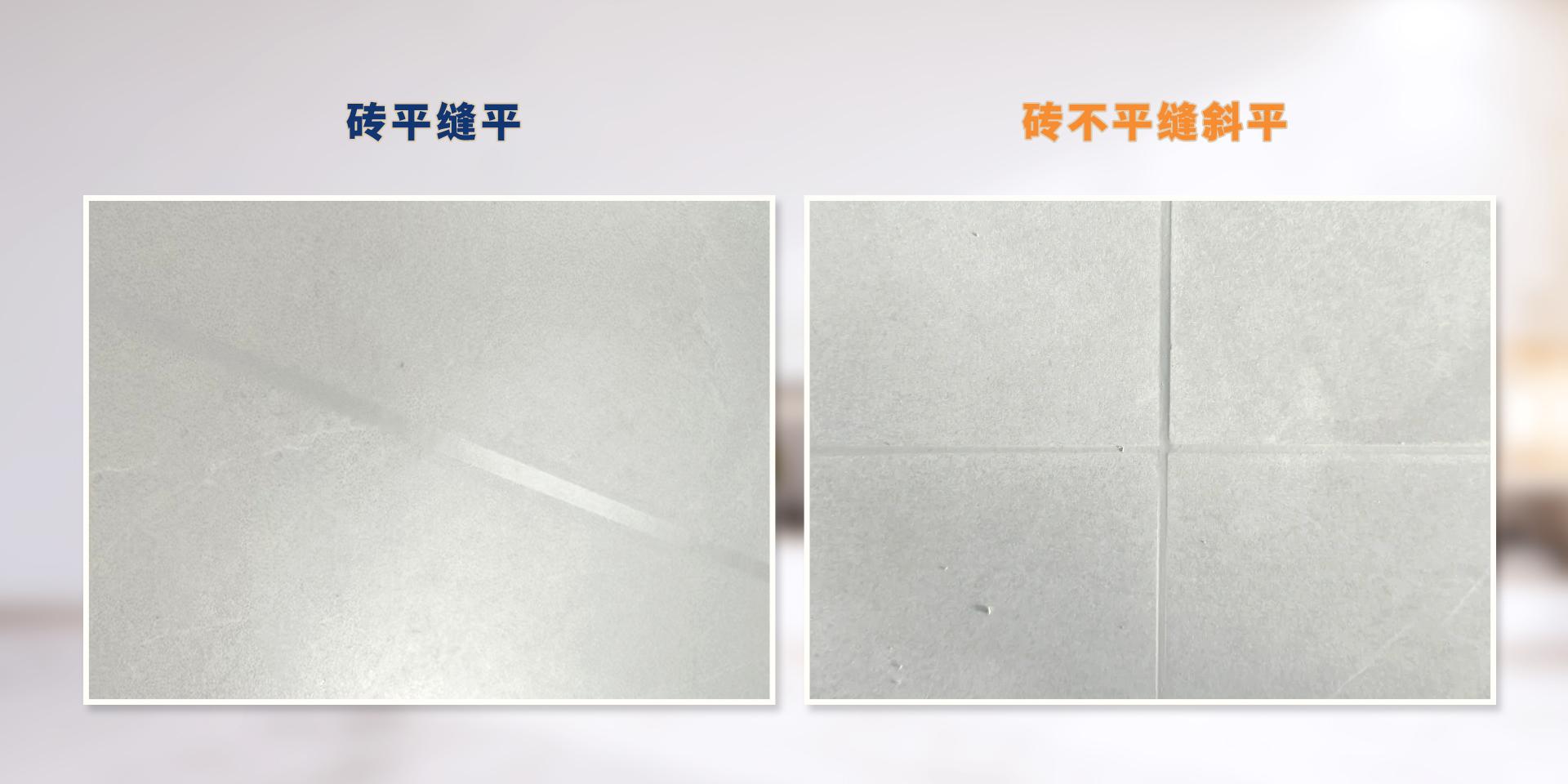 做平缝需要提前通知铺砖师傅,把砖铺平,不要铺的东高西低,平缝是建立在平砖基础之上的,预留缝隙不要太宽,大概2mm左右即可。